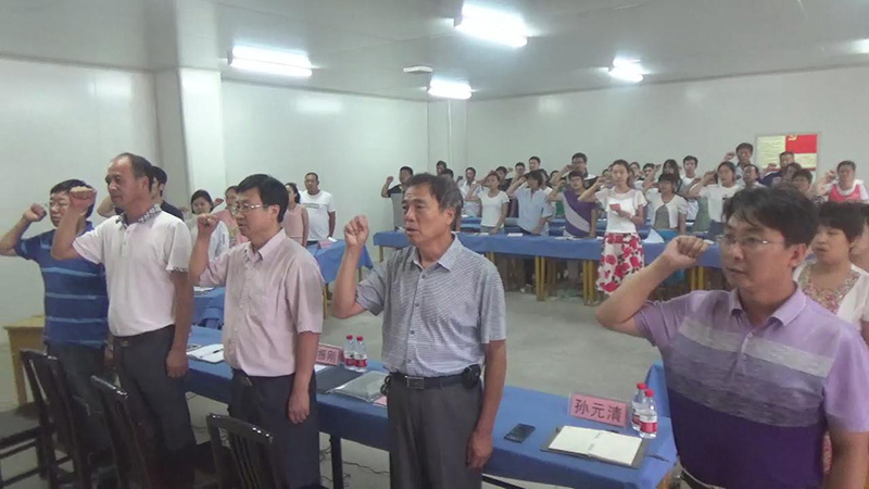 大会开始,全体党员起立,高唱国歌,面对党旗重温誓词庄严宣誓。