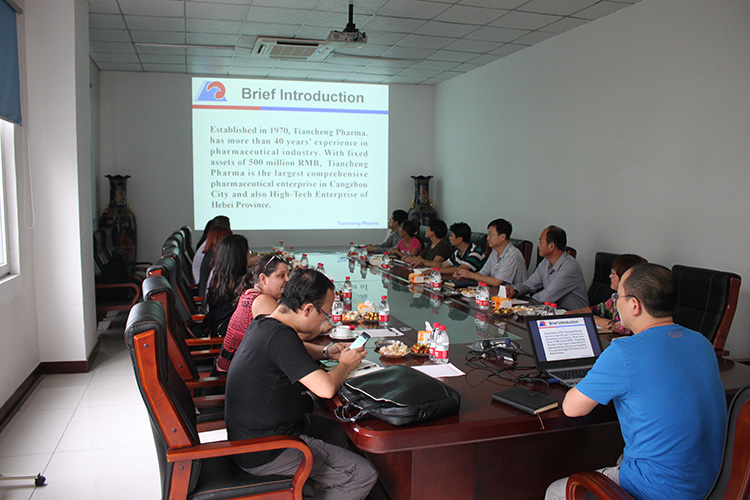 副总经理王颢,孙元清,总经理助理刘玉珍带领外国专家团,先后参观了公司大容量注射剂二车间塑瓶生产线,现代化立体仓库。外国专家们就产品生产环节的技术关键点进行详细的询问与切磋。尽管语言表达习惯上的不同,但在双方共同努力下,此次交流顺利进行,达到满意效果。