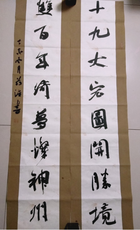 3月23日-3月30日,沧州经济开发区总工会以“新时代·新征程”为主题,举办了“铁狮酒杯”书画摄影展。公司动力车间制水岗位的书法爱好者蒋浩的参展作品荣获书画类一等奖。中国书法家协会会员、沧州书画协会副主席房世良点评他作品时说:“这幅对联笔力苍劲,很有想法,令人眼前一亮。若加以指导、勤加练习很有希望冲击省展甚至参加国展。”